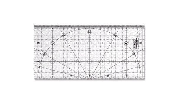 E’ realizzato in plastica trasparente resistente e permette una misurazione in scala metrica. Consente inoltre di tagliare anche forme triangolari : le linee gialle presenti definiscono le angolazioni di 15°,30°, 45° e 60°.